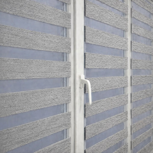 Тканинні ролети день ніч складаються з горизонтальних смуг прозорої та непрозорої тканини. Через це їх у народі називають “Зебра”. Перевага цих систем над звичайними рулонними шторами в тому, що тут можна регулювати світловий потік шляхом зміщення прозорих смуг по непрозорим