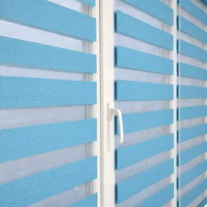 Тканинні ролети день ніч складаються з горизонтальних смуг прозорої та непрозорої тканини. Через це їх у народі називають “Зебра”. Перевага цих систем над звичайними рулонними шторами в тому, що тут можна регулювати світловий потік шляхом зміщення прозорих смуг по непрозорим