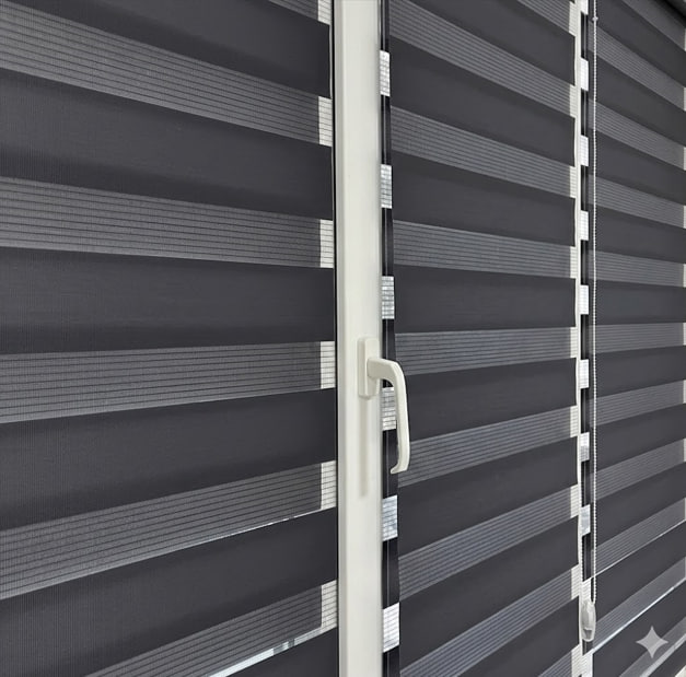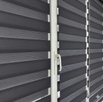 Тканевые ролеты день ночь состоят из горизонтальных полос прозрачной и непрозрачной ткани. Поэтому их в народе называют “Зебра”. Преимущество этих систем над обычными рулонными шторами в том, что здесь можно регулировать световой поток путем смещения прозрачных полос по непрозрачным.